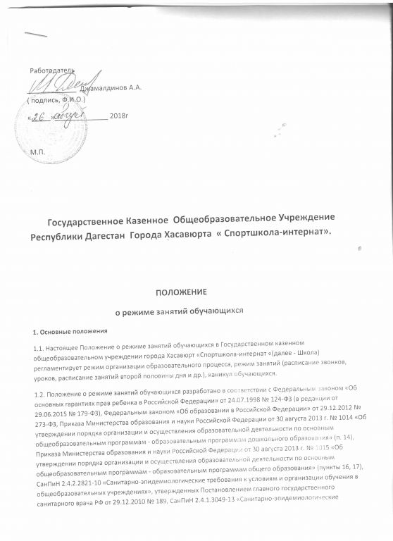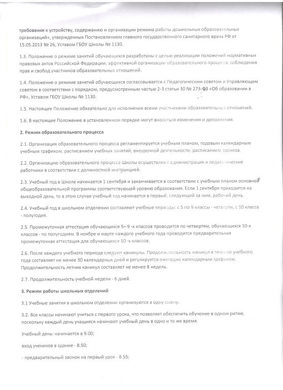 Режим занятий обучающихся (воспитанников)