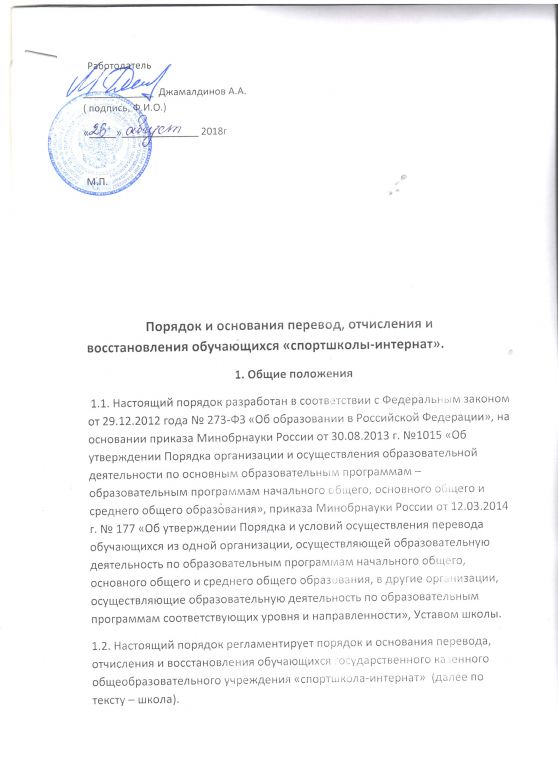 Порядок и основания перевода, отчисления и восстановления обучающихся (воспитанников)