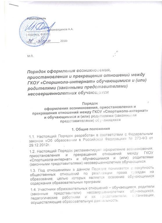 Порядок оформления возникновения, приостановления и прекращения отношений между образовательной организацией и обучающимися (воспитанниками) и (или) родителями (законными представителями) несовершеннолетних